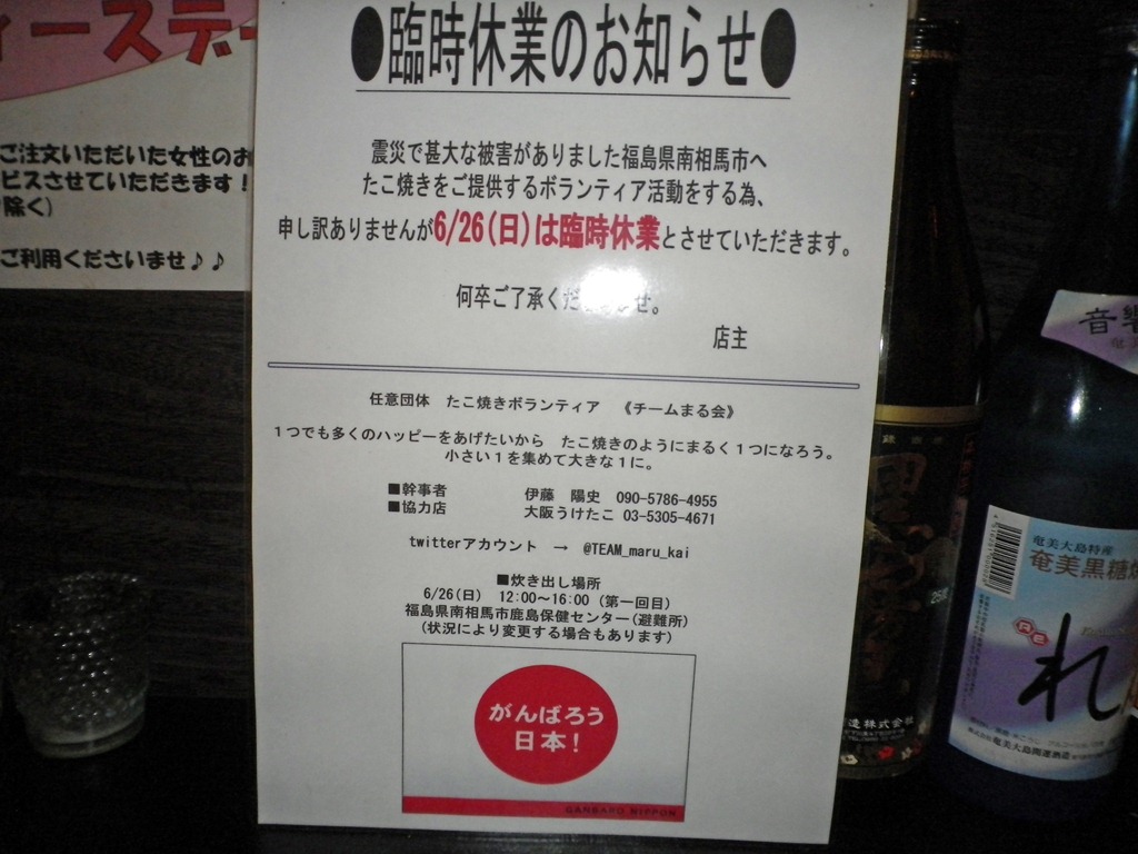 阿佐ヶ谷散策中美味しいたこ焼き屋さんも発見・・・ ←リンクです 明日(6/26)は震災支援で南相馬にタコ焼きつくりに行かれるので臨時休業だそうです